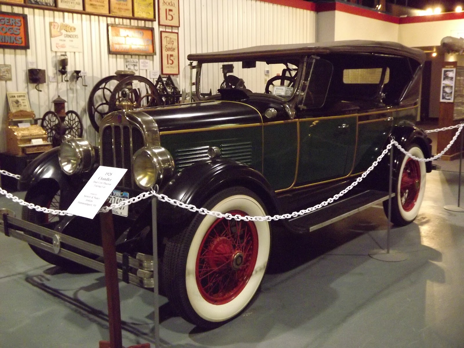 There are about a dozen antique cars--many from the personal collection of Guy Bennett, Wayland, N.Y.--as evidenced by this 1928 Chandler Dual-Cowel Phaeton Touring Car: